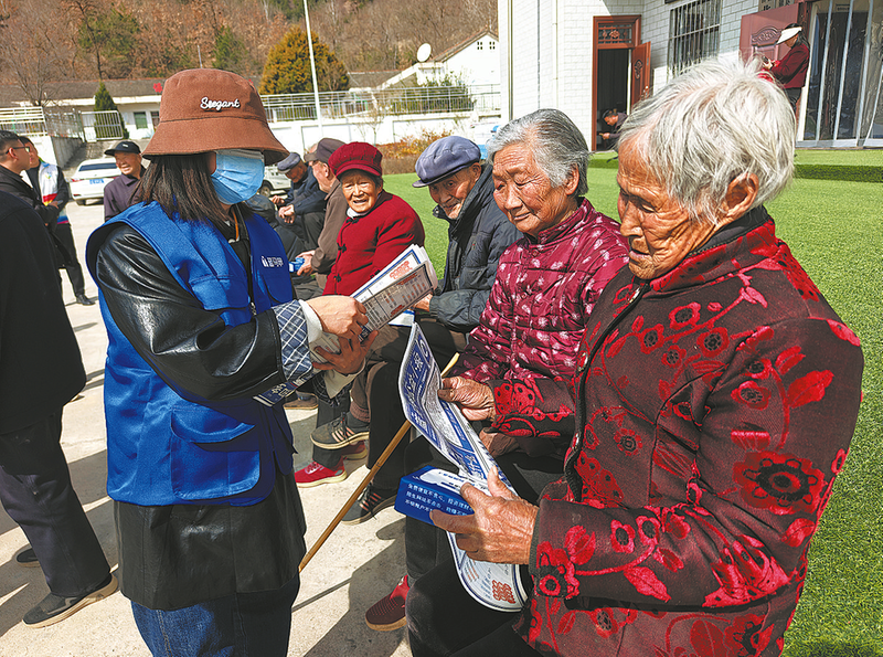 3月21日,商洛市社会组织服务中心联合商洛彩虹公益中心在洛南县保安镇北斗村开展“蓝马甲”行动,旨在提升老年人防诈骗意识,助力老年人学习智能手机使用方法以及常见电信诈骗防范方法。 (本报记者 王孝竹 摄)