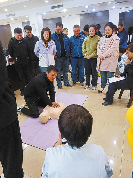 近日,国网商洛供电公司开展全员AED应急救援知识培训,分批次对全公司员工进行应急知识实操培训,并现场培训胸外按压、AED正确使用方法,提高员工在紧急情况下的自救能力。