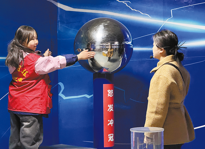 上午9时许,小记者带着好奇心来到了市科技馆,在讲解员的引导下,他们首先参观了“电磁大舞台”,通过高压放电演示、磁悬浮实验等,直观了解电磁学在生活中的应用。随后,“机器人大舞台”上的机器人成为焦点,只见它们跟随音乐用灵活的机械臂展现出整齐的舞姿,引得小记者连连惊叹。航天航空展区则点燃了小记者的爱国情怀。长征火箭模型、航母舰队沙盘、陆军装备展示等,系统呈现了中国航天事业的辉煌成就。
