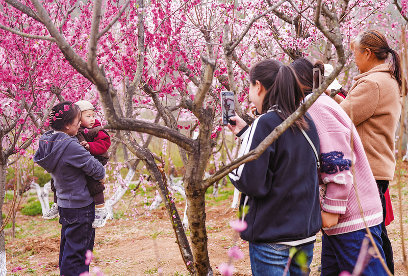 谷内漫山遍野的桃花次第绽放,粉白娇嫩的花朵灿若云霞,吸引了众多游客前来赏花踏春,感受春日浪漫。游人徜徉其中,或驻足欣赏,或拍照留念,或现场直播,或拍摄短视频,欢声笑语此起彼伏,尽享春日的美好。