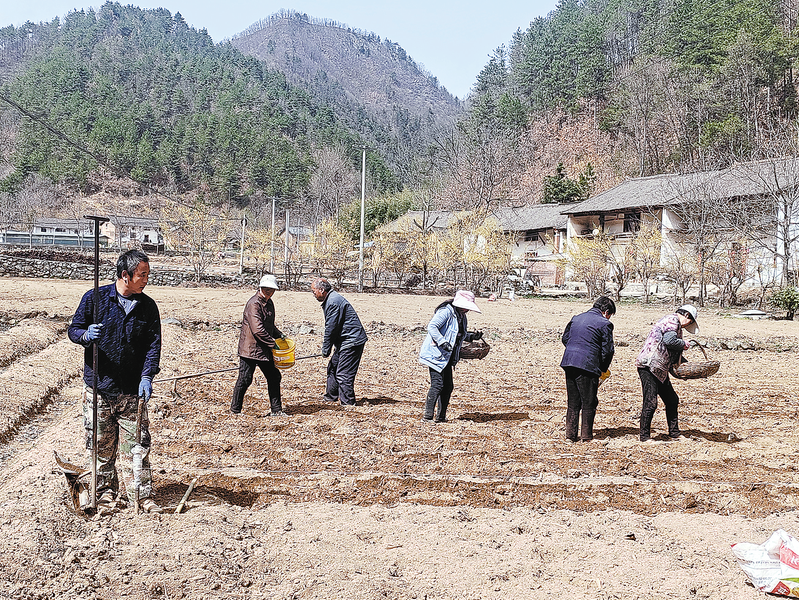 近日,丹凤县北部山区蔡川镇上庄坪村正在组织群众种植马铃薯。近年来,上庄坪村大力发展农村集体经济,通过土地流转等方式规模化发展马铃薯六十多亩,群众可从中获得务工、租金、分红等收入。(本报通讯员 杨莉 摄)