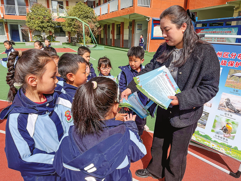 4月2日,商州区林业局先后在市区人流密集处及学校开展陕西省第四十四届“爱鸟周”主题宣传活动,工作人员通过展板讲解、发放资料等形式,向市民与学生们普及鸟类保护法规及知识,激发青少年护鸟热情,共建人与自然和谐共生的生态环境。 (本报记者 王孝竹 摄)