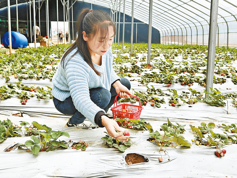 近日,洛南县三要镇北司村大棚种植的草莓喜获丰收。随着今年大棚草莓丰收,北司村越来越多的村民加入到草莓、甜瓜、西瓜等特色农业种植中来。 (本报记者 王孝竹 摄)