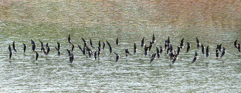 鸟群掠过江面 (本报通讯员 张生超 摄)本报讯 (通讯员 张丹阳 张亚琼)春暖花开,商洛大地草长莺飞,鸟雀欢腾。4月6日下午,商洛丹江湿地飞来了一大群美丽的黑翅长脚鹬。它们时而掠过水面,红足轻点,时而振翅高飞,黑羽白腹在蓝天碧水间划出优美的弧线,构成了一幅优美的生态画卷。