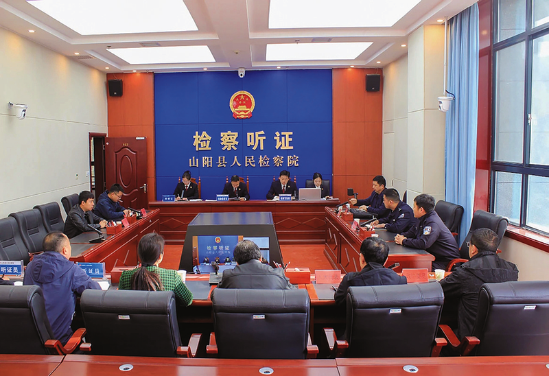 4月3日,山阳县人民检察院对一起拟监督公安机关撤案案件召开公开听证会,邀请人大代表、政协委员、人民监督员、听证员、公安机关等参加。听证会上,承办检察官对案件事实认定、证据审查、法律适用及拟监督公安机关撤案理由、法律依据等作出详细阐述。听证员经过认真讨论、评议,一致同意检察机关的处理意见。 (本报通讯员 杨 钊 摄)