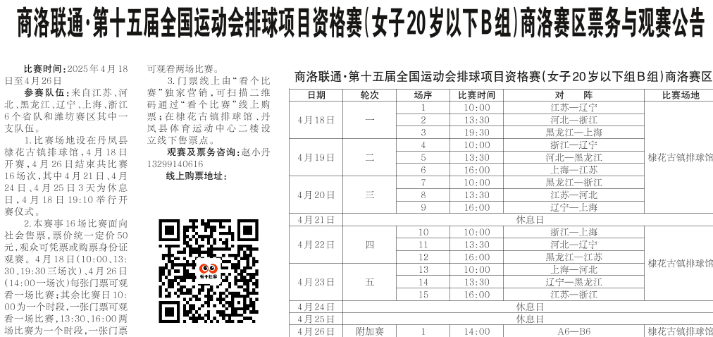 商洛联通·第十五届全国运动会排球项目资格赛(女子20岁以下B组)商洛赛区票务与观赛公告
