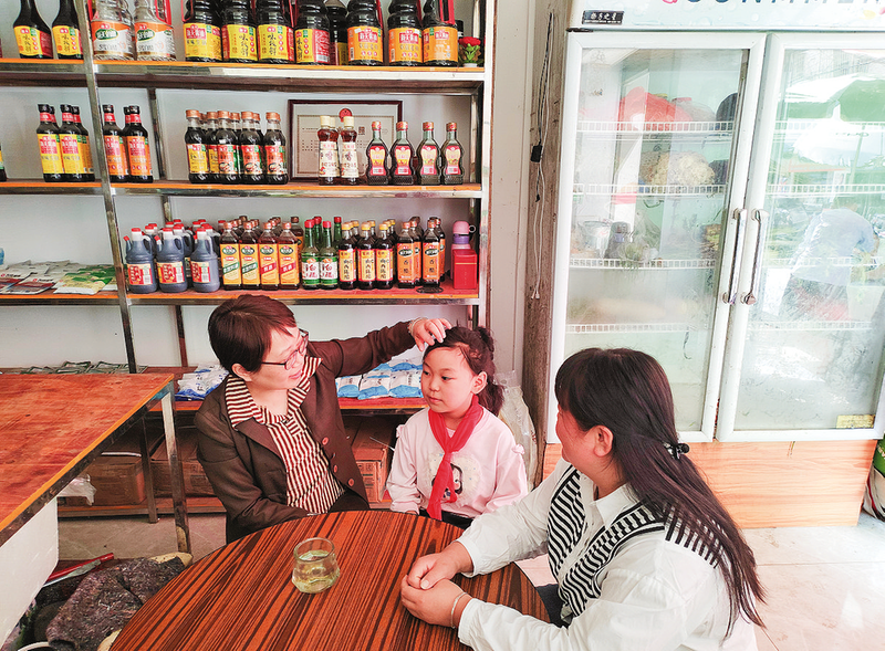 赵虹老师在家访,与学生和家长进行沟通。本报记者 南 玺