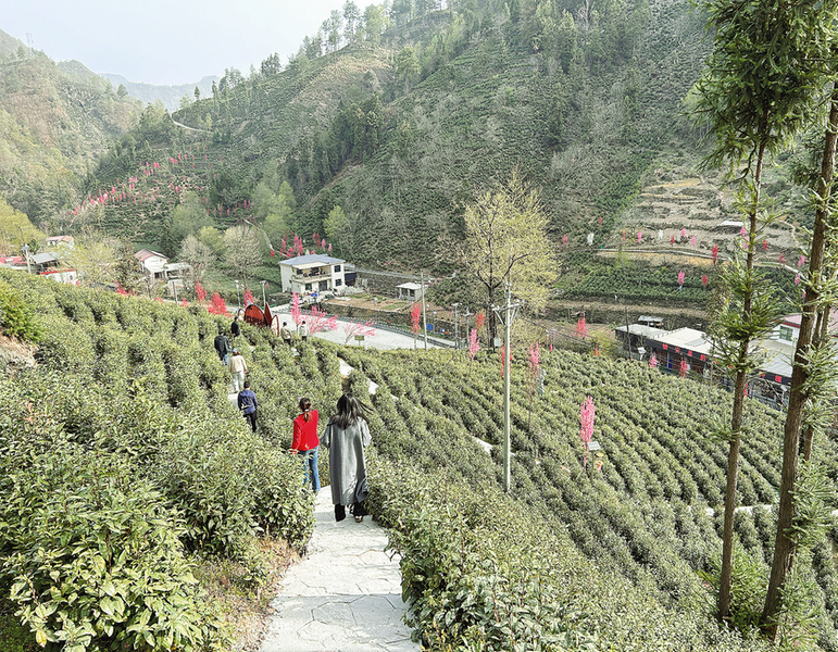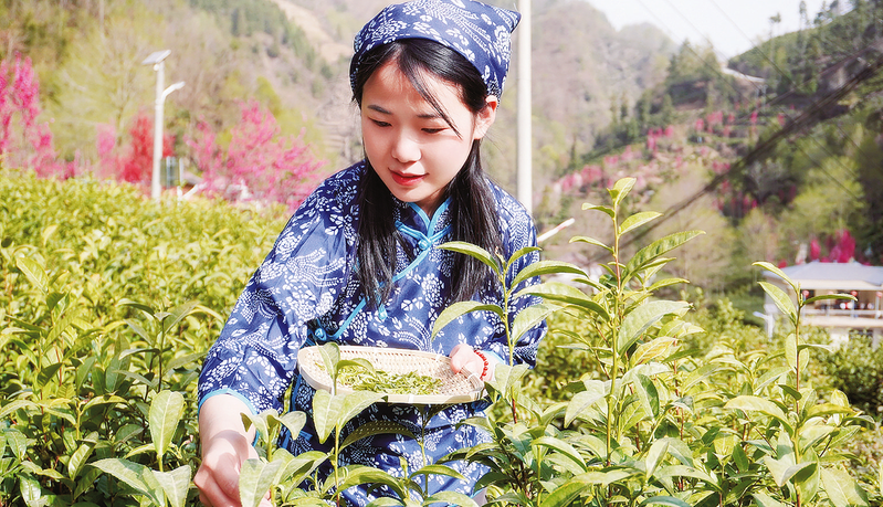 游客在茶园里游玩“二月天杨柳醉春烟,三月三来山青草漫漫,最美是人间四月天,一江春水绿如蓝……”4月10日,镇安县达仁镇象园村的茶山上,云雾缭绕。25岁的程芳穿梭在茶树间,指尖拂过沾着清露的茶芽,嘴里轻轻哼唱的旋律,仿佛为这幅春日采茶图配上了灵动的音符。谁能想到,眼前这个动作娴熟的采茶姑娘,一年多前还是城市里的一名钢琴教师。