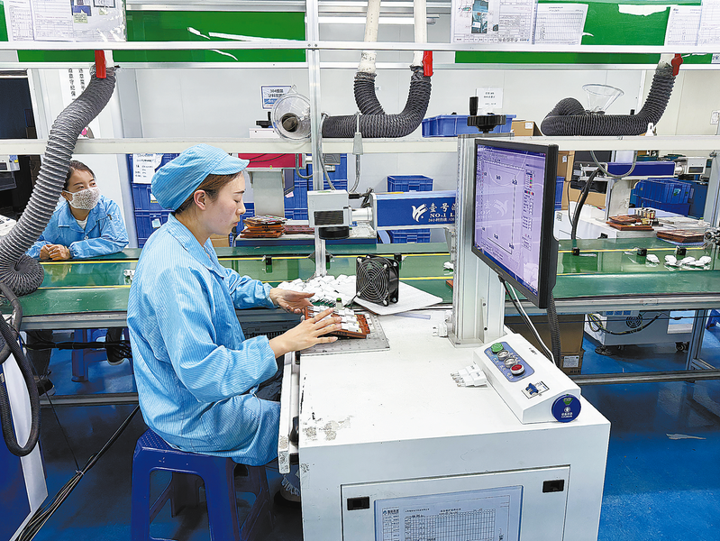 4月10日,在山阳瑞裕电子科技有限公司的生产车间里,工人正在使用自动化设备生产电源适配器。据悉,该公司今年联合西安高校开展技术攻关,不断提升企业的核心竞争力,推动电子信息产业技术升级。