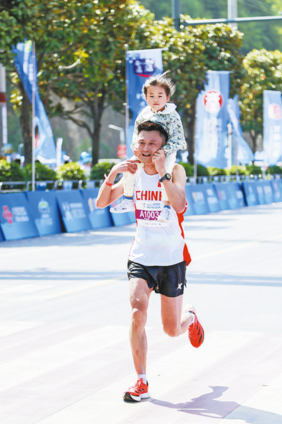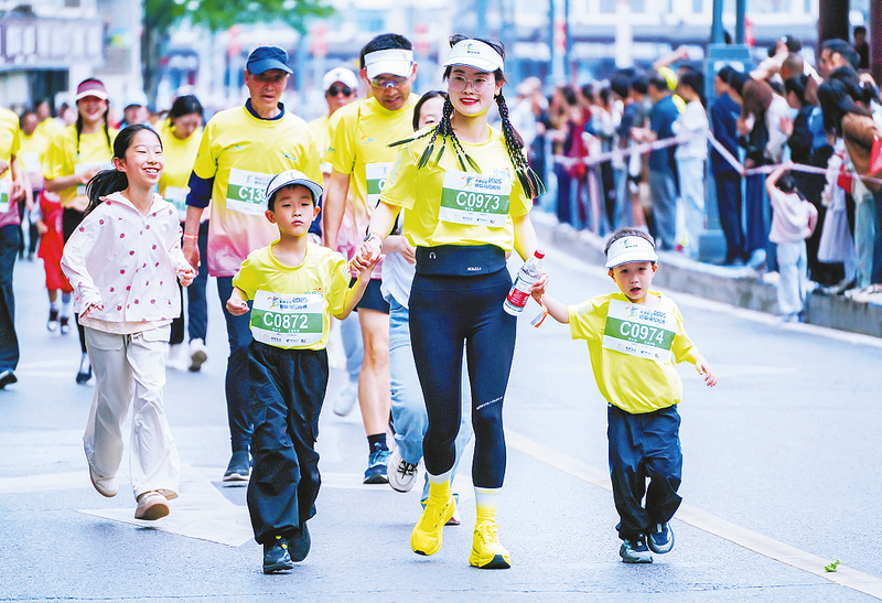 “这是我第一次在现场看马拉松!”10岁的观赛者许子航举着亲手画的加油牌,上面写着“跑过我家门口”。他跟着妈妈沿赛道跑了一百来米,一脸高兴地说:“明年我要报欢乐跑,奖牌要挂在书包上天天带着!”