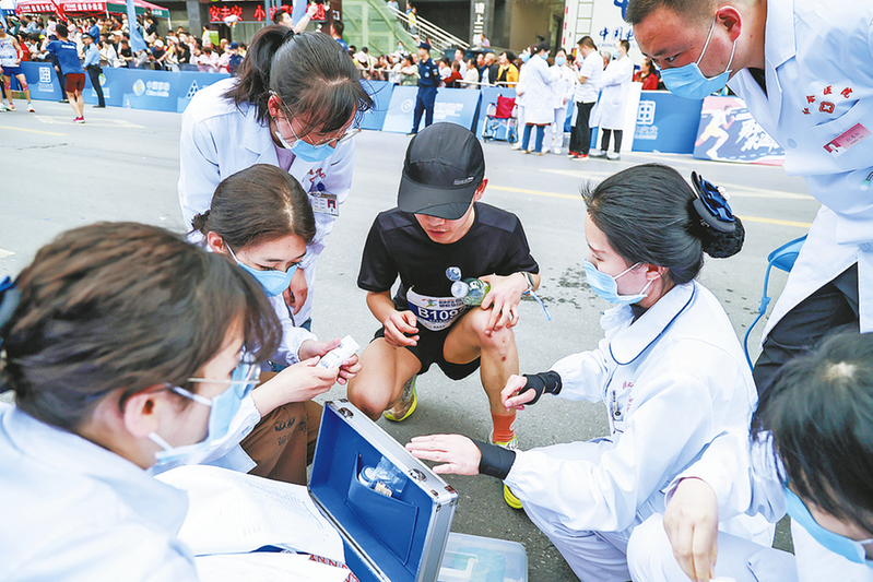 “医疗救护车+移动AED+医疗跑者”三级救援体系覆盖全程,32台AED设备、150名三甲医院医护人员组成“生命防线”。为应对复杂地形,组委会提前两周开展三次全流程演练,模拟主会场踩踏、选手突发疾病等极端场景,全方位做好各种情况应对。公安、交警部门对赛道实施分段管控,开通赛事接驳专线,并通过智能交通系统实时调度,确保观众进退有序。