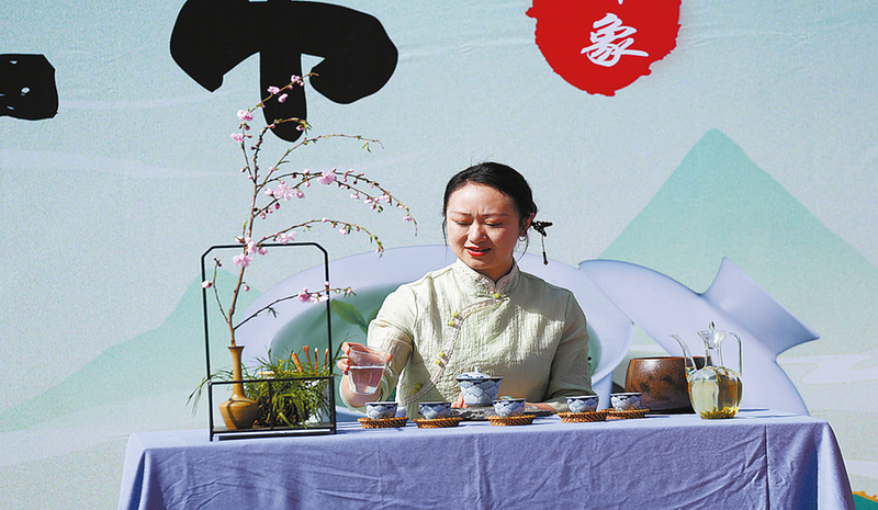 3月28日,镇安县2025年象园茶开采季活动拉开帷幕,茶艺师现场进行茶艺表演。