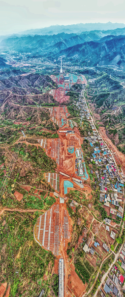 4月10日,正在紧张施工中的西十高铁西岭隧道口至商洛西站全段。