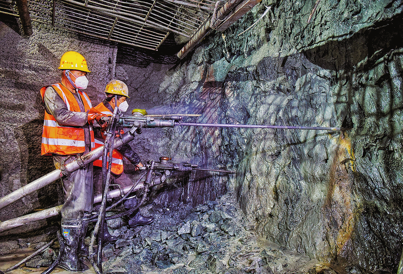 4月8日,施工人员在西岭隧道内进行钻孔作业。