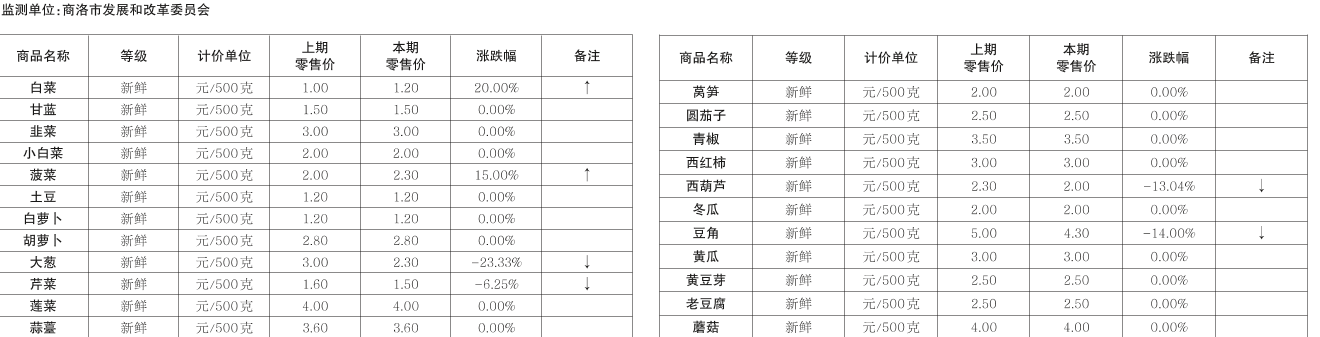 商洛市蔬菜农批市场价格监测情况(2025-04-22)