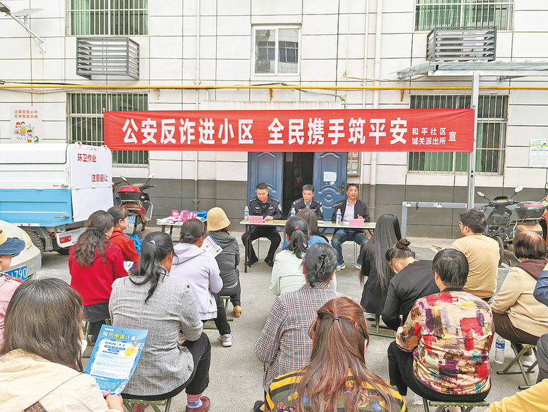 为进一步提高社区居民防范电信网络诈骗的意识和能力,切实保障居民财产安全。4月16日,市公安局商州分局反诈中心、城关派出所联合和平社区共同在东新路小区开展“反诈宣传进社区 筑牢居民防骗墙”反诈骗宣传活动。 (本报通讯员 周亚军 摄)