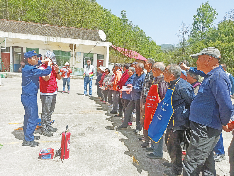 4月23日,洛南县消防救援大队的宣传员们深入洛南县保安镇北斗村,为群众开展消防安全知识宣传,现场为群众讲解了火警报警电话、灭火器的使用、防烟面罩的佩戴以及安全出口的识别等消防知识,并为群众发放了礼品,进一步增强了群众的消防安全意识,提高群众自防自救能力。(本报通讯员 毕波波 摄)