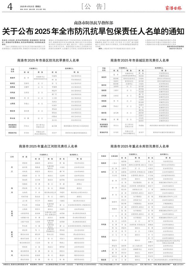 关于公布2025年全市防汛抗旱包保责任人名单的通知