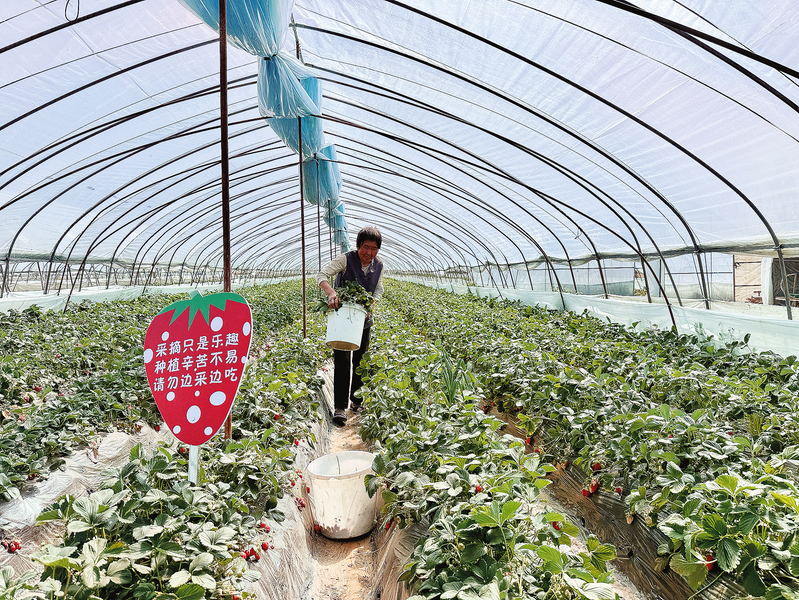 4月21日,在洛南县永丰镇欣欣草莓园大棚内,当地农民正抢抓农时进行春管作业。该草莓园共有4个大棚,年净收益在12万元左右。近年来,洛南县紧紧围绕“果蔬菌药畜菜”六大主导产业,加快农业产业结构调整步伐,全力推动全县农业产业“棚”勃发展,为乡村振兴奠定了坚实的产业基础。 (本报记者 巩琳璐 摄)