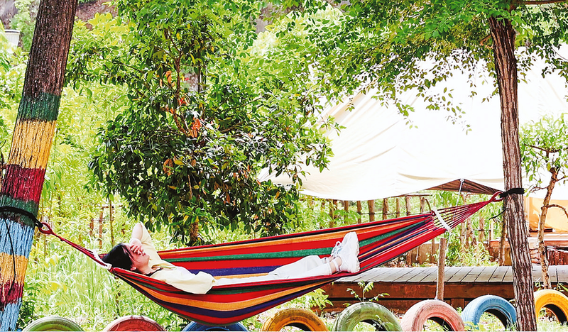 二郎庙村积极争取项目资金将这片山水福地精心打造成集乡村休闲、拓展研学、民宿餐饮于一体的近郊旅游点。不同于一些“空降”的营地,“山也·椅子”更像是从这片土地自然生长出来的。它没有破坏原有的山水格局,而是巧妙融入其中,生态停车场、干净整洁的农家乐、便利的烧烤设施一应俱全,既满足了现代游客对舒适和便利的需求,又最大限度地保留了乡村的野趣。