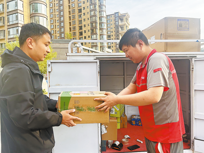 “您好,京东快递有您一个退货,请问您什么时间方便上门取件?”4月25日下午3时,快递配送车一到商州区江南世纪城大门口,宋毅平就开启了忙碌的接打电话、配送快递模式。