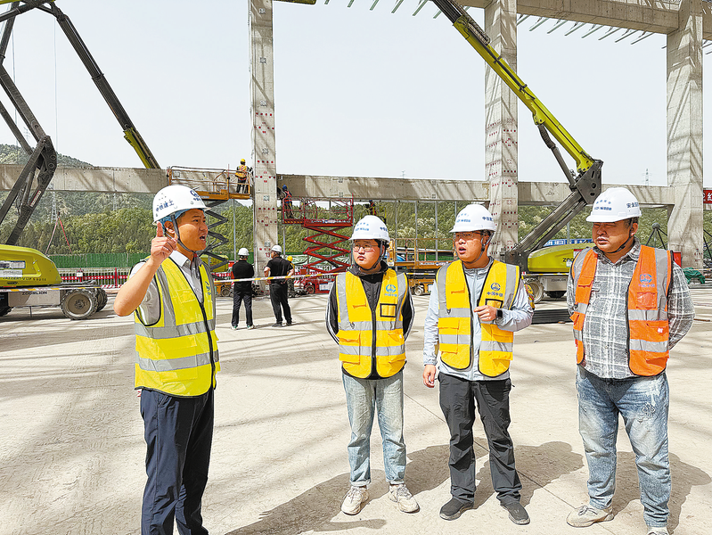 4月30日,时令踏入春夏交替之际,暑气已悄然升腾,空气中裹挟着阵阵热浪,让人提前感受到盛夏的威力。在商州区杨峪河镇西十高铁商洛西站的施工现场,各种大型机械和工人正在火热地施工中,中铁建工集团新建西安至十堰(陕西段)高铁站房工程项目经理李欣正在跟各个施工队负责人就地开短会,纠正发现的问题。