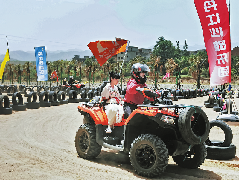 “五一”假期,商州区丹江沙滩乐园人气爆棚,许多游客带着小孩体验沙滩摩托,感受速度与激情的魅力。图为5月1日,游客在体验沙滩摩托。 (本报记者 肖 莲 摄)