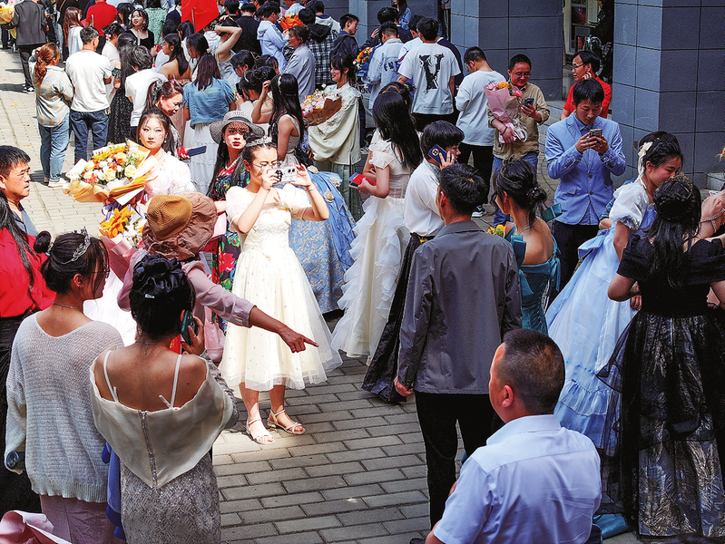 4月28日,镇安中学一位学生在学校感恩节成人礼上拍照。镇安中学为引导学生懂得感恩、学会回报,举行了以“感恩父母,感恩老师”为主题的成人礼,邀请学生家长来到校园和学生在感恩节成人礼上互动,唱响家校共育进行曲。