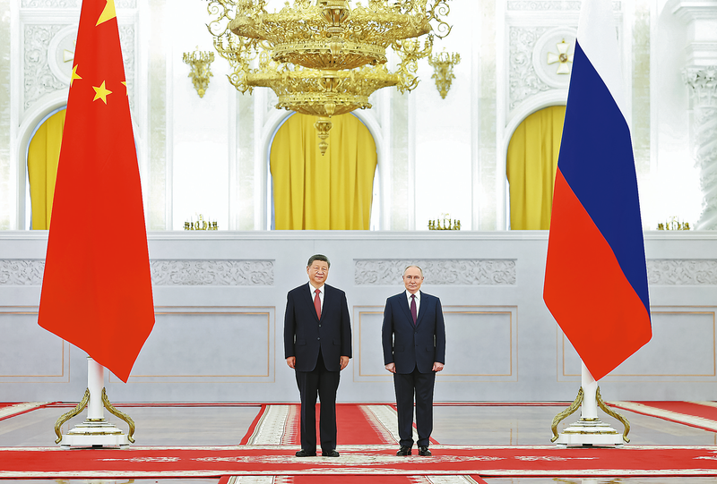 当地时间5月8日上午,俄罗斯总统普京同中国国家主席习近平在莫斯科克里姆林宫举行会谈。这是普京在乔治大厅为习近平举行隆重欢迎仪式。 (新华社记者 黄敬文 摄)新华社莫斯科5月8日电 (记者 倪四义 胡晓光)当地时间5月8日上午,俄罗斯总统普京同中国国家主席习近平在莫斯科克里姆林宫举行会谈。两国元首就中俄关系和重大国际和地区问题深入交换意见,一致同意坚定不移深化战略协作,推动中俄关系稳定、健康、高水平发展;共同弘扬正确二战史观,维护联合国权威和地位,维护国际公平正义。