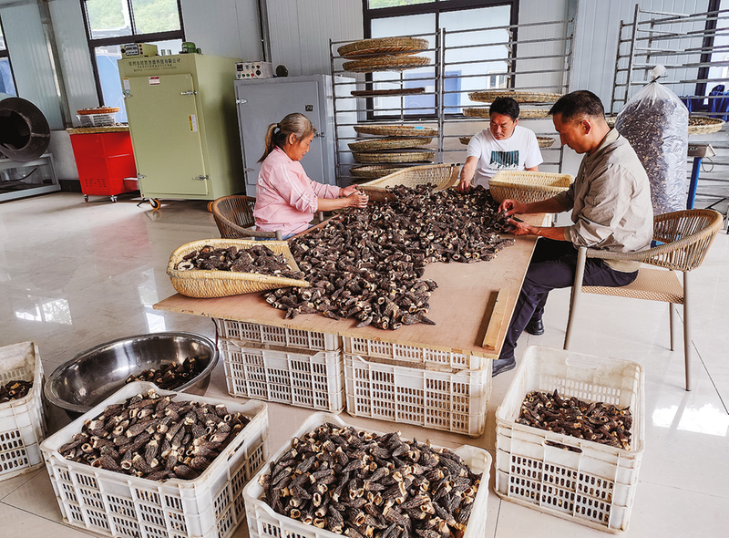 五月九日,位于丹凤县武关镇梅庄村的丹凤茗韵农业科技有限公司烘烤房内,工人对烘干的羊肚菌按等级进行分拣。该公司采取“公司+基地+农户”模式,在县农技中心的技术指导下,今年四十棚羊肚菌喜获丰收,加工干品羊肚菌九百多公斤,年增收六十多万元。