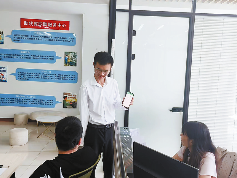“‘翼职助残通’将为企业和残疾人建立起从求职招聘—应聘面试—入职的闭环服务,同时还能从政策解读、技能培训、企业合作等方面为企业和个人提供全方位的帮助和服务。”徐有痒说。5月14日下班前,徐有痒指导员工完成了小程序“翼职助残通”的运营前测试,脸上露出了欣慰的笑容。