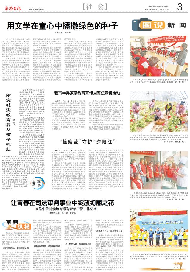 本报讯 (记者 肖 云)5月11日至17日为《中华人民共和国家庭教育促进法》规定的全国家庭教育宣传周,《陕西省实施〈中华人民共和国家庭教育促进法〉办法》作为我省家庭教育地方立法也于5月1日起正式施行。5月15日,为纪念第32个国际家庭日,我市组织开展了“‘家教伴成长 润心护未来’——家庭教育宣传周普法宣讲活动”。
