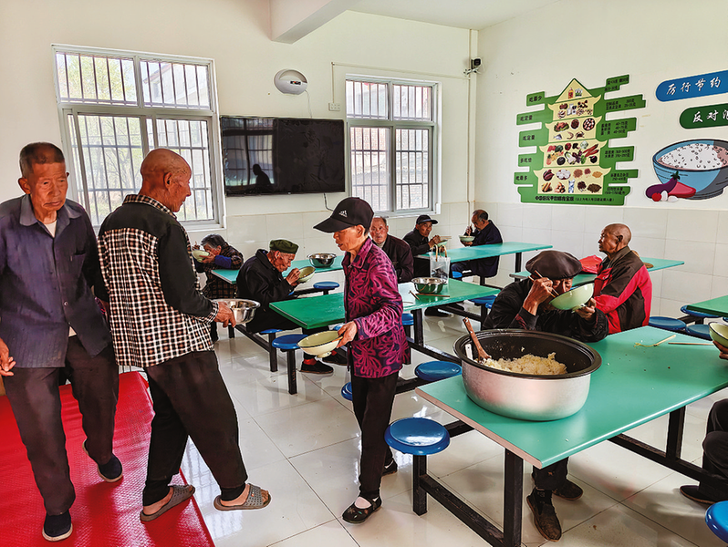 食堂运转起来,光靠一两个人忙不过来,于是党员干部、志愿者与热心村民一起上阵。有人扫地擦桌子,有人取餐递餐具,还有人专门守在门口,搀扶着腿脚不便的老人就餐。一到饭点,饭菜香气扑鼻,整个食堂都荡漾着烟火气和浓浓暖意。