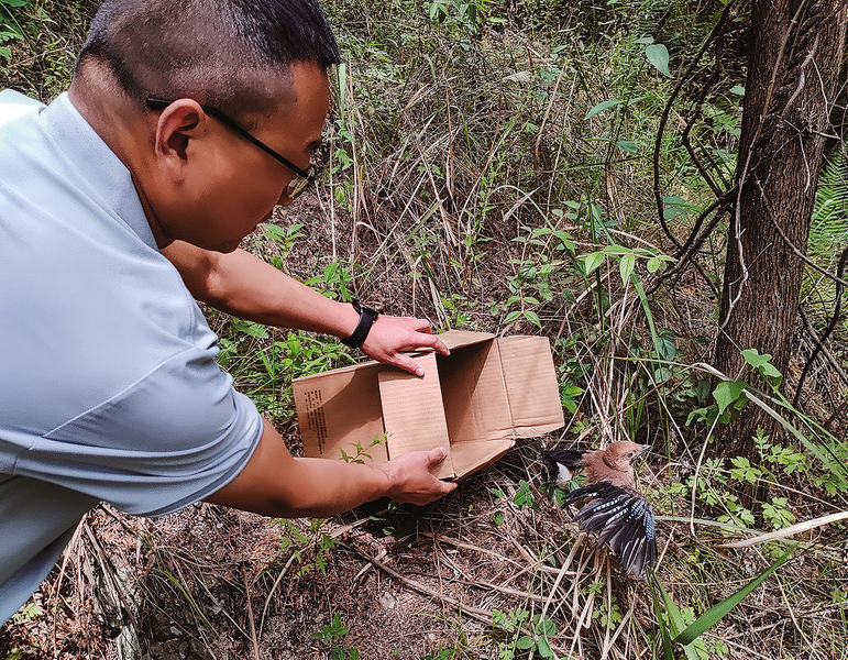 工作人员放归被救野生鸟儿本报记者 肖 莲