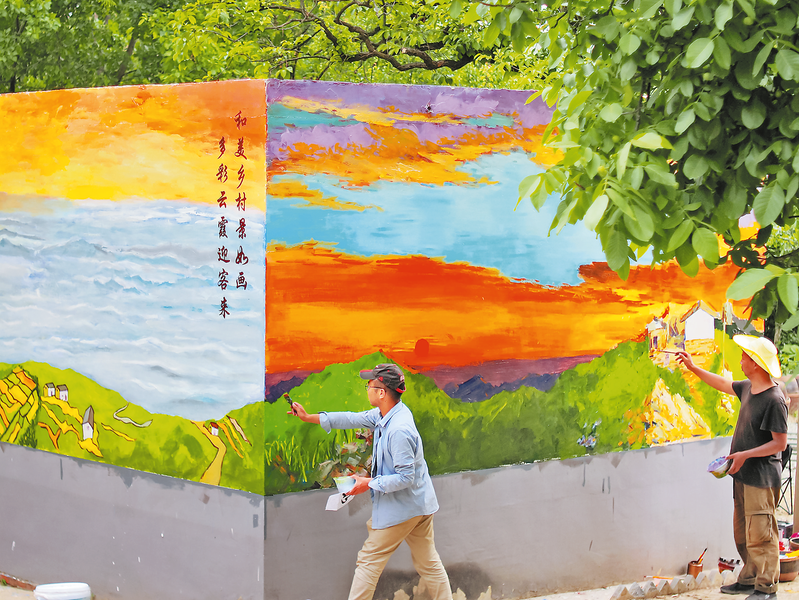 5月19日,商州区金陵寺镇邀请专业绘画师,在熊耳山村人居环境整治示范区绘制特色文化墙。此次创作覆盖墙面面积200多平方米,内容紧扣当地特色文化、家风文化、农耕文化等核心要点,让朴素的乡村小院有了“一步一景”农旅新看点。一幅幅生动绚丽的画面不仅美化了乡村环境,更丰富了和美乡村建设内涵,为乡村振兴注入新活力。(本报记者 方 方 摄)