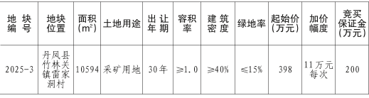 四、本次拍卖出让的详细资料和具体要求,见拍卖出让文件。申请人可于2025年5月23日至6月11日到丹凤县自然资源局一楼(丹凤县土地收购储备中心)获取出让文件。