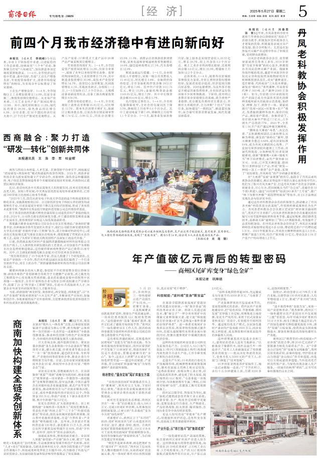 位于洛南县的西部鑫兴稀贵金属有限公司是我市钼产业链的链主企业,2024年,公司借力西安高校研发力量,开工建设钼铼及稀贵金属产业园项目,使传统钼矿冶炼迈入绿色智造新阶段。