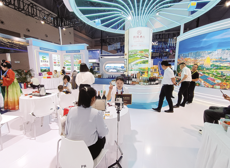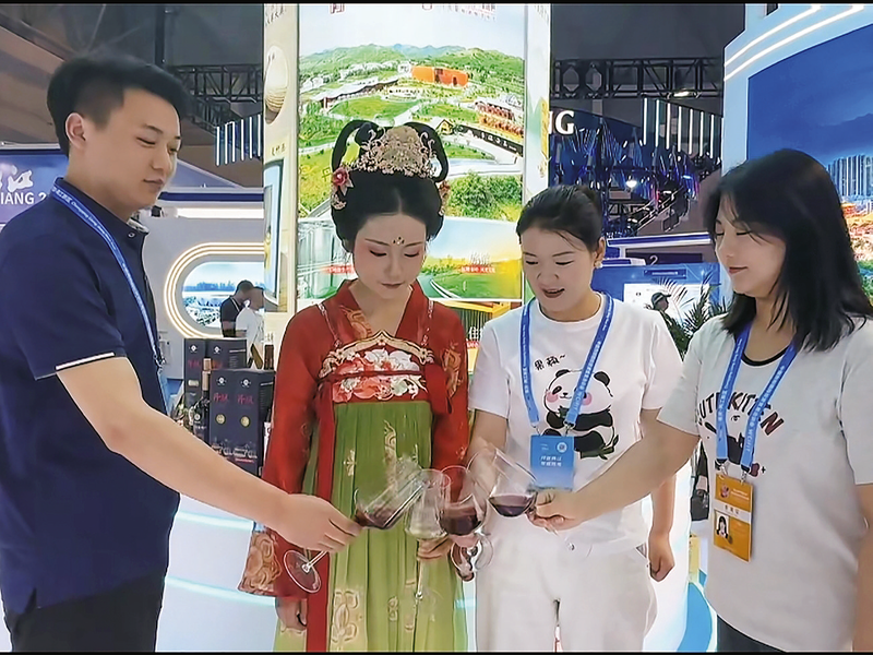 此次参展期间,丹凤酒庄精心打造了视觉盛宴:醇香品鉴区里,10多款佳酿在醒酒器中绽放琥珀光泽;数字展示屏前,葡萄园四季流转的影像与百年酒窖的斑驳光影交相辉映;云端直播间内,主播手持“大芳”牌酒标复刻版娓娓道来。参展期间,丹凤酒庄通过线上线下联动奏响交响曲——现场接待近千名客商品鉴洽谈,云端直播间收获超10万次互动,创新营销模式实现销售额突破12万元。
