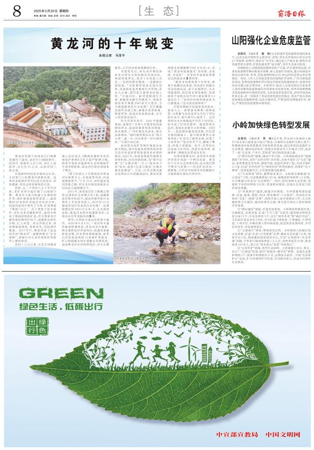 水清岸绿黄龙河,是商洛生态保护坚实步伐的一个鲜活注脚。黄龙河十几年生态治理历程,也为我们刻下警示与希望——历史矿层的每一道褶皱,只有在可持续开采的棱镜中才能折射出更灿烂的光芒。