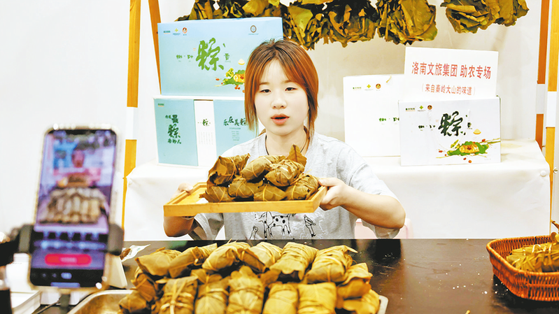 专业主播在线上售卖洛南槲叶粽子