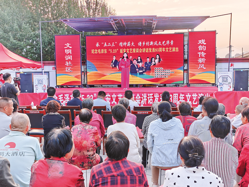 近日,省戏曲研究院联合商洛市地方戏曲研究院在商州区刘湾街道静泉社区开展“承‘五二三’精神薪火 谱乡村新风文艺华章”主题戏曲演出活动。精彩的演出赢得群众阵阵掌声与喝彩。此外,志愿者在活动现场向群众发放移风易俗倡议书并宣传反诈知识。 (本报见习记者 马 姜 摄)