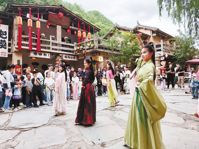 端午假期,柞水县终南山寨景区推出系列特色文旅活动,吸引众多省内外游客慕名而来。图为景区精心策划的NPC游园活动,沉浸式互动体验令游客纷纷驻足,拍照打卡,现场热闹非凡。