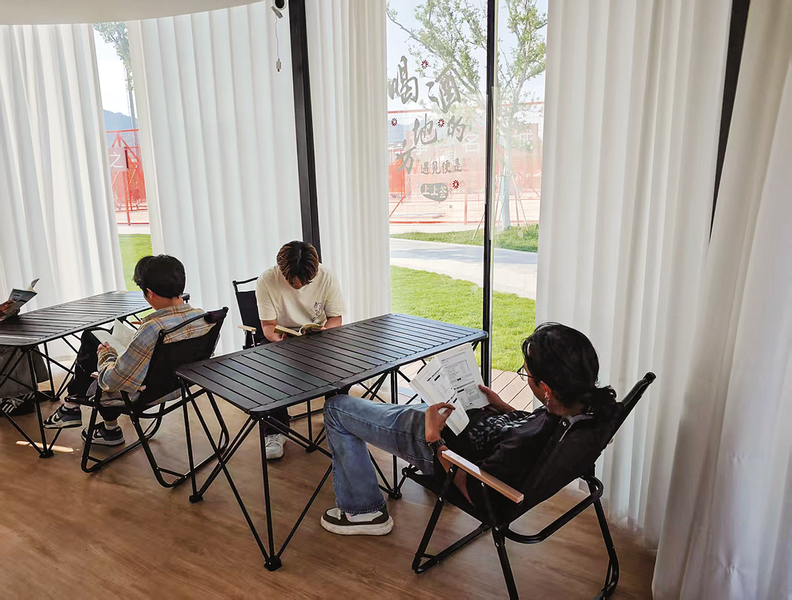 群众运动公园新建的书吧内人们在专心阅读5月15日,满载6000册新书与配套物资的货车,沿着山间公路驶向商州区杨峪河镇、金陵寺镇、杨斜镇。商州区文旅局、区图书馆工作人员将物资卸下,并为三镇图书馆分馆挂牌,标志着商州三级阅读体系建设迈入新阶段。