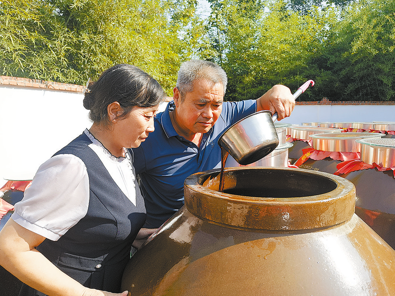 “在醋厂干活一天能挣150元,比出去打工强,离家近,啥都方便。”正在翻缸的村民黄玉林高兴地说,他今年65岁,虽然身体状况还不错,但这个年纪出去找活很多地方都不要,在村里的厂子干活还能顾家,一举两得。