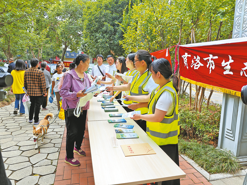 6月5日是第54个世界环境日,市生态环境局在市区文化广场开展以“美丽中国我先行”为主题的宣传活动,为市民发放印有环保知识的宣传册、扇子和帆布袋。 (本报见习记者 王一功 摄)