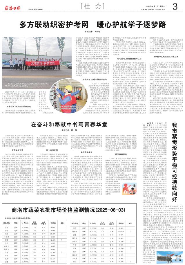 为保障考生顺利出行,我市交通运输部门精心筹备、多措并举。6月3日,第十届“爱心送考”交通志愿服务活动正式启动。此次活动组织6台公务用车、10台双士出行车辆统一张贴“爱心送考车”车贴,另有48辆双士出行车辆同步参与,考生凭准考证即可免费乘坐。针对特殊考生,安排4台公务用车提供“一对一”预约接送服务,还配备了2台应急车辆应对突发情况。此外,在商洛市中学、商洛市初级中学、商州区第一中学3个考点设置服务点,为考生和家长免费提供矿泉水、纸巾等物品。