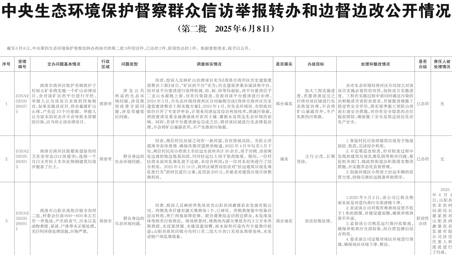 中央生态环境保护督察群众信访举报转办和边督边改公开情况