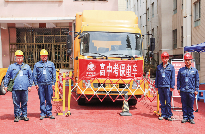 6月8日,商州区供电公司的保电人员值守在考点附近。