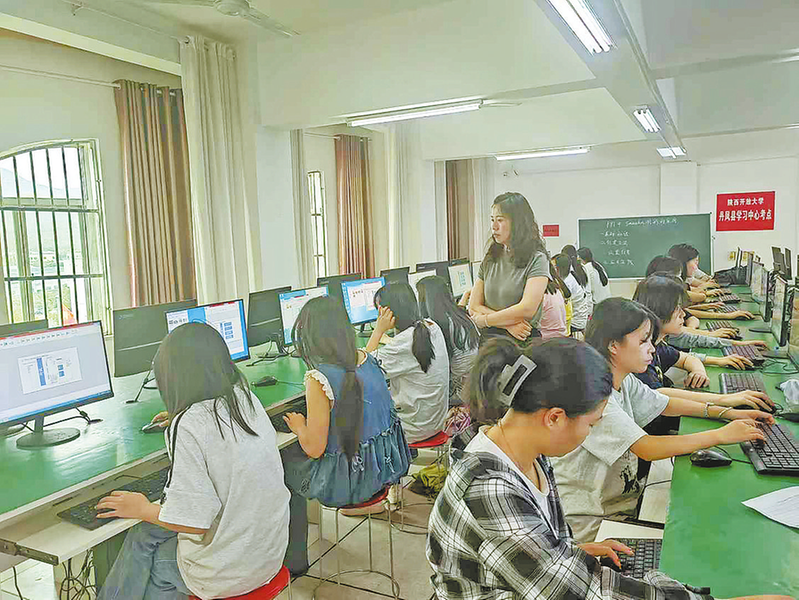 6月9日,在丹凤县职业教育中心的机房里,2023级幼儿保育班的学生敲击键盘的声音此起彼伏,张淑菊穿行在过道,耐心地给学生答疑、指导操作。这是张淑菊从事信息技术教育的第九年,跨越两地的教学经历,让她对学生在信息技术上的差异有着深刻的理解。