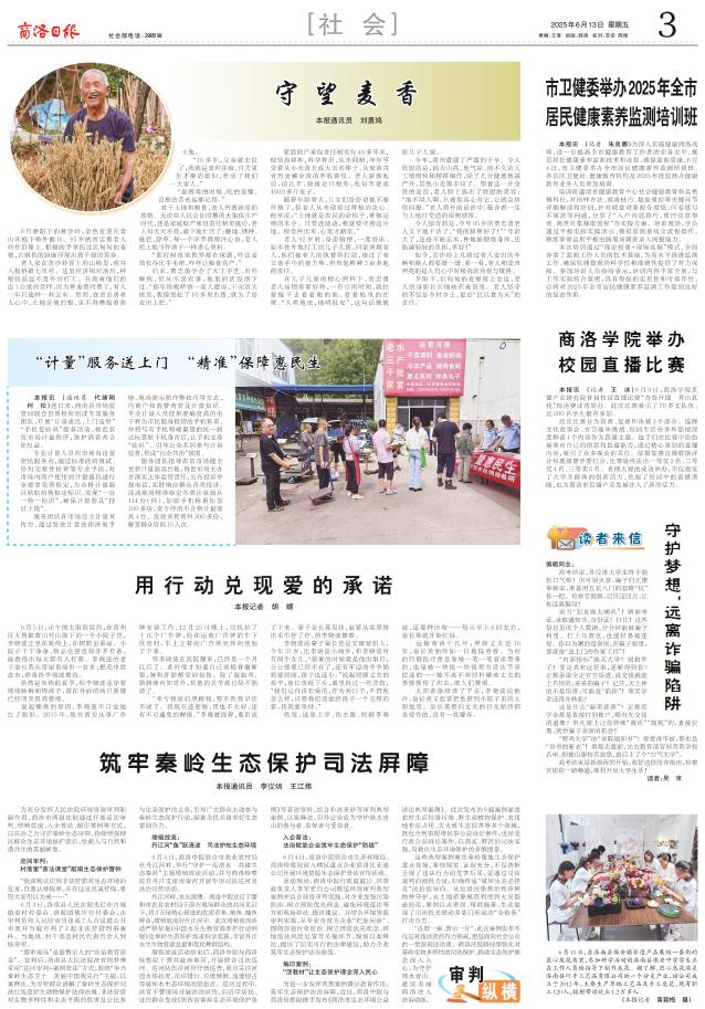 6月骄阳下的黄沙岭,金色麦浪在青山环抱下格外醒目。95岁的贾忠勇老人站在田埂上,粗糙的手掌抚过沉甸甸的麦穗,古铜色的脸庞浮现出孩子般的笑容。